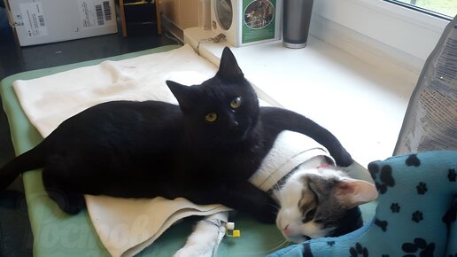 Выздоровление хвостатых пациентов в надежных лапках. В Ростове-на-Дону обнаружен Добрый Доктор Айболит — котик, который живет в ветклинике и помогает ее пациентам быстрее восстанавливается после хирургических вмешательств. Черныш обладает огромным сердцем и не может пройти мимо чужой боли. Он ложится к только что прооперированным животным, согревает их теплом, поет свои песенки и вылизывает...