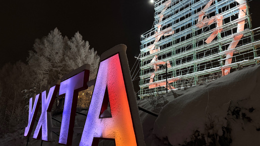 Новогоднее оформление возле самой большой в мире голове Ленина в Ухте!