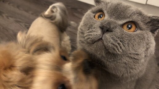 Собака Йорк и кот шотландский вислоухий -Хорошая совместимость!!!-Видео!