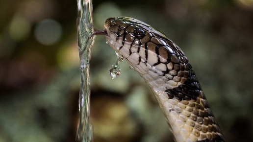 Кольчатая водяная кобра: водный змей-охотник 🐍Кольчатая водяная кобра — крупная ядовитая змея, обитающая в пресноводных водоёмах Центральной и Западной Африки. Длина тела достигает 2,7 метров, окраска варьируется от жёлто-коричневой до тёмно-оливковой с чёткими чёрными поперечными полосами. 🦎Ведёт преимущественно водный образ жизни, отлично плавает и ныряет, может находиться под водой до 10 минут...
