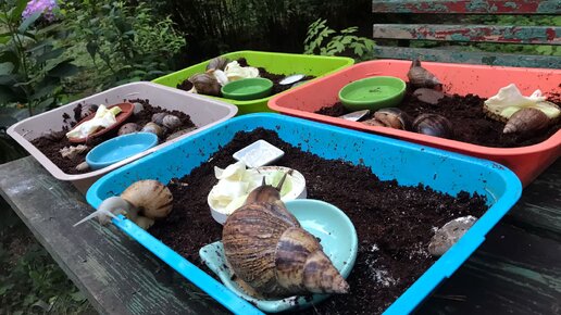 Здравствуйте! Сегодня мы с вами поговорим о том, как правильно выбрать контейнер для улитки. Улиткам необходим контейнер. Его материалом может быть пластик или стекло. Если улиточка ещё малышка, то на одну особь можно выделить 5 литров. На вторую - 2,5-5 литров и на каждую последующую примерно столько же. Уже взрослым особям нужно выделять по 10-15 литров на одну особь и 8-10 литров на каждую последующую. Некоторые говорят, что Ахатина Ретикулята требует 20л контейнера...