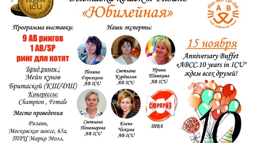 ⏰ 15 - 16 ноя (16д) 🏛 #Рязань #Россия #Выставка 😽 Выставка кошек и котов: Международная выставка кошек 🏆 International Cat Union Контакты и вопросы организаторам здесь: 🌐 https://www.sunny-cat.ru/vystavki-koshek.php?mesto=170-rjazan Программа выставки: Суббота 15.11.2025 6 AB Rings + Anniversary Buffet "ABCC. 10 years in ICU" Воскресенье 16.11.2025 3 AB Rings + Champion Congress Ring (ADL), Maine Coon Breed Ring, British Breed Ring, Kitten SP Ring, Female Congress Ring В выставке могут принять участие кошки в возрасте не менее 3-х месяцев...
