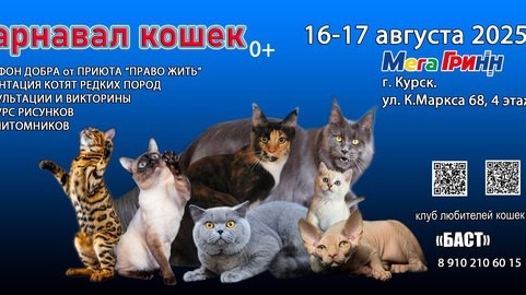 ⏰ 16 - 17 авг (5д) 🏛 #Курск #Россия #Выставка 😽 Выставка-шоу кошек и котов: КАРНАВАЛ КОШЕК 🏆 Клуб любителей кошек «Баст» Контакты организаторов здесь: 🌐 https://www.sunny-cat.ru/vystavki-koshek.php?mesto=36-kursk 16-17 АВГУСТА 2025 с 11...