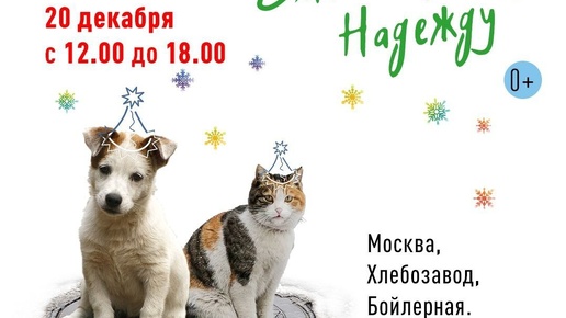 приютов, которую проводит фонд Дарящие надежду. 🐕На выставку искать себе счастье в Новый год приедут около 200 кошек и собак из приютов Москвы и Московской области. Активных и спокойных, разных возрастов, размеров, расцветок — здесь посетители смогут найти именно своего прекрасного питомца по душе. Все животные здоровы, привиты, отдаются в добрые руки по договору ответственного содержания (нужен паспорт)...