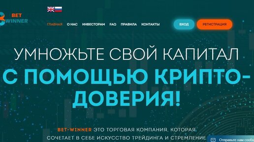 Bet-Winner — торговая компания, предлагающая инвестировать в высокодоходный бизнес. Одним из главных направлений является торговля криптовалютой BIP. Инвесторам обещают гарантированную прибыль 25% в сутки. Контора якобы работает на международном рынке и использует инновационные инструменты для извлечения прибыли, но на самом деле это типичная финансовая пирамида, которая вот-вот лопнет. Обзор проекта Bet-Winner Начнем с легенды. В компании работают профессиональные трейдеры, юристы, бизнес-аналитики и IT-специалисты...