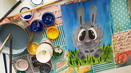 Забавный зайчик. Легкий рисунок с детьми и не только.