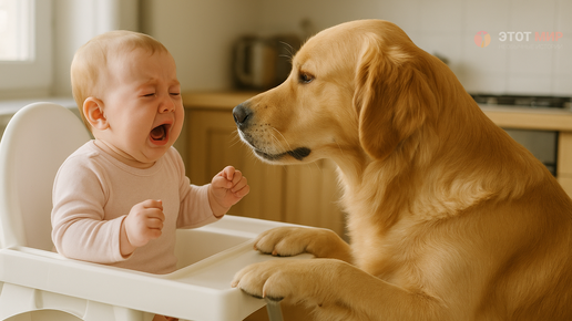 Золотистый ретривер хотел успокоить плачущего ребёнка, но то, что она сделала, было просто удивительным