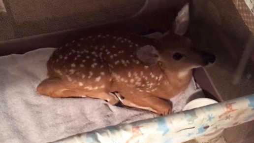 Золотистый ретривер вытащил из воды олененка и оказал ему первую помощь