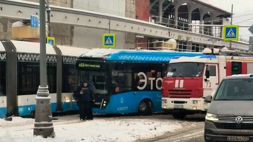 5 человек пострадали при столкновении электробуса и трамвая на проспекте Мира в Москве, пишет канал 112
