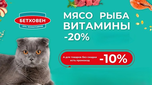 Бетховен: позаботьтесь о питомце выгодно. Промокоды на январь-февраль 2026 на корм, лакомства и наполнители.