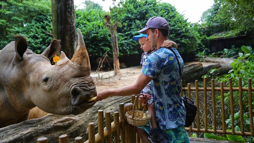 Территория зоопарка огромная. 28 гектаров! Все очень ухожено и зелено. Неоднократно я ловила себя на мысли, что нахожусь в диких джунглях. Животные живут в условиях максимально близких к среде их обитания. Они красивые, ухоженные и живые. На них приятно и любо смотреть. При входе в зоопарк нам дали карту с расписанием кормлений животных и с расписанием шоу. Кормления контактные и без контактные. Нас интересовали контактные кормления. Наш ребенок обожает животных. В зоопарке можно покормить носорогов, жирафов, слонов и черепашек...