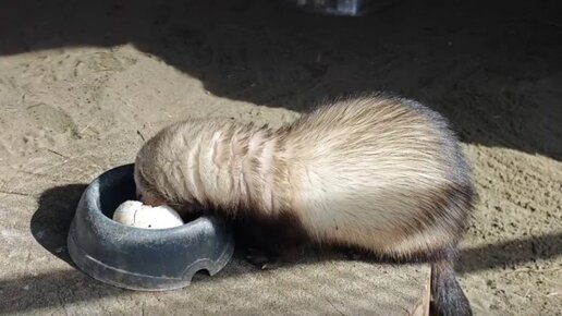 Хорек в барнаульском зоопарке продемонстрировал свой невероятный аппетит
