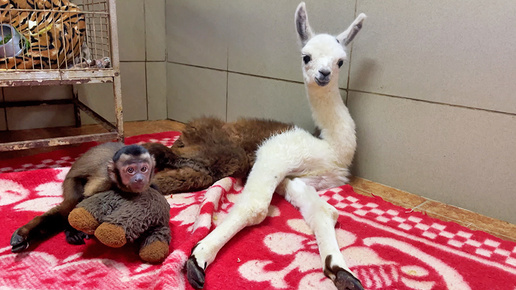 За одинокой ламой Карамелькой в крымском зоопарке приглядывают капуцин и собака