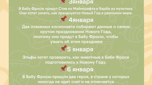 ! Дорогие друзья! Со 2 по 7 января в нашем уютном зоопарке «Баба Фрося» пройдут волшебные зимние каникулы! Это время, когда природа спит, а вот наши пушистые, пернатые и мохнатые обитатели — полны энергии и ждут встречи с вами!...