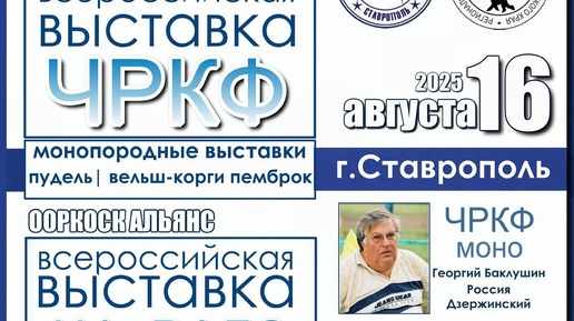 ⏰ 16 авг (7д) 🏛 #Ставрополь #Россия #Выставка 🐶 Выставка собак: РКО СК Альянс 🏆 Региональное кинологическое общество Ставропольского края "Альянс" Контакты организаторов здесь: 🌐 https://www.petsman...