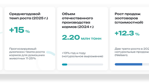 В 2024 году российский рынок зоотоваров достиг 510 млрд рублей (рост +17,7% к 2023-му). Это реальный рост, а не результат инфляции. При общей инфляции 9,52% зоорынок значительно опережает экономику. Для сравнения: в 2023 году рынок составлял 433 млрд рублей (данные «Зооинформа»). Рост замедлился по сравнению с 2023 годом (+31,2%), но структура сохранилась: Производство кормов выросло до 1,5 млн тонн (+17,7% в деньгах и +13% в натуральном выражении к 2023 году). По данным Россельхознадзора, в 2024 году производство достигло 2,2 млн тонн...