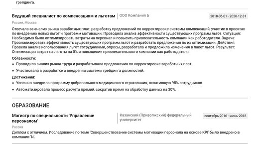 Пример резюме начальника отдела компенсаций и льгот 2025