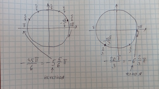 Как расставить такие углы как 20П/3, -77П/6 на окружности? - Элементарно!