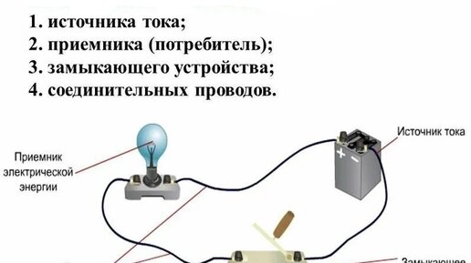 Что такое электрическая цепь простыми словами? Электрическая цепь — совокупность источников и приёмников электрической энергии, соединённых проводниками, которые обеспечивают протекание тока. Цепь может содержать множество дополнительных элементов, например ключи, переключатели, защитные устройства, а также измерительные приборы. Любая электрическая цепь имеет следующие базовые элементы: источник тока, потребители тока, соединительные провода...