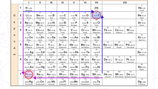 Принцип не сложен - свойства изменяются в зависимости от того, насколько большим или маленьким радиусом обладает атом. Поэтому мы сделаем небольшую систему координат в виде периодов и групп в таблице Менделеева с двумя маячками-элементами