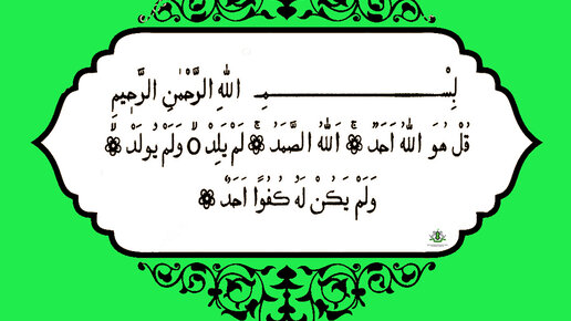 بِسْمِ اللّهِ الرَّحْمنِ الرَّحِيمِ Бисмилляхир-Рахманир-Рахиим Во имя Аллаха Милостивого и Милосердного! قُلۡ هُوَ اللّٰہُ اَحَدٌ Куль хуАллааху Ахад Скажи : «Он-Аллах-един; اَللّٰہُ الصَّمَدُ Аллаахус-Самад Извечен Аллах один; لَمۡ یَلِدۡۙ وَ لَمۡ یُوۡلَدۡ Лям ялид уа лям юляд Не рождал Он, и не был рожден, وَ لَمۡ یَکُنۡ لَّہٗ کُفُوًا اَحَدٌ Уа лям якулляху куфууан Ахад И с Ним никто не сравним». Пророк (мир ему и благословение) сказал своим сподвижникам: «Может ли кто-нибудь из...