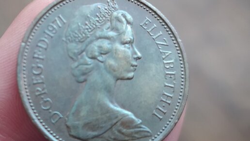 Хочу показать вам один прикол, который попробую объяснить, если получится. Вот, значит, имеется у меня самая обычная иностранная монетка - 2 пенса 1971 года с портретом Елизаветы ве секонд. Чем примечательна эта монета? Да ничем особо. В 1971 году началась чеканки монет данного образца, а пенс стал называться новым. В России монеты в 2 пенса 1971 года сегодня продаются по цене от 10 до 50 рублей за штучку - на форумах, на "мешке" и в интернет-магазинах. Монету, которую я сфотографировал, я так примерно и покупал в куче других монет...