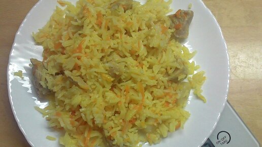 Из такой горстки риса мы получаем целую кастрюлю плова на 5 порций! Столько получилось плова: Это 5 таких порций: Рецепт плова Готовится очень просто, всего 2 шага: Всё! Как всегда, я пишу о рецептах очень простых. Требует совсем немного времени. Я добавляю много овощей (лук, морковь). Без них может быть суховато. Приправы по вкусу: хмели-сунели, перец, чеснок, барбарис...