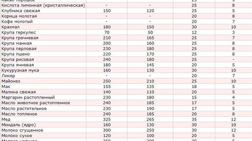 Сколько вешать в граммах? Мерная таблица сыпучих продуктов и жидкостей