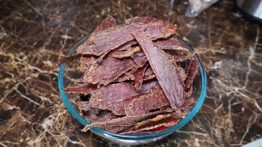 Мясные чипсы! простой и вкусный #рецепт Ингредиенты: 1,4 кг говядины (без жира и жил) Специи на 1 кг 10 г Соль 10 г. Нитритная соль 10 г. Сушеный чеснок 10 г. Копченая паприка 4 г. Кориандр 4 г. Чёрный перец 4 г. Сушеный базилик Приготовление: 1. Для начала удаляем с мяса жир и лишние жилы, затем отправляем мясо в морозилку на 1-2 часа(у меня пролежал сутки и поэтом достал заранее на 1-2 часа перед нарезкой), затем нарезаем мясо слойками до 5 мм, добавляем все специи, хорошо перемешиваем, накрываем пищевой пленкой и оставляем в холодильнике на сутки; 2...