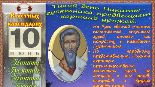 10 июня - Традиции, обычаи и поверья, связанные с этим днём. Все праздники, которые отмечаются в этот день в разных календарях.