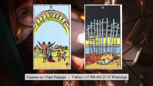 Сочетание карт "Десятка Кубков" и "Десятка Мечей" в Таро
