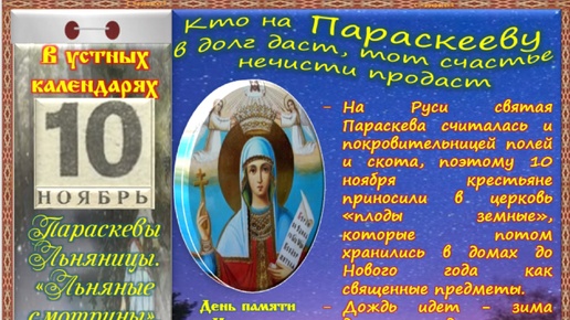 10 ноября - Приметы, обычаи и ритуалы, традиции и поверья дня. Все праздники дня во всех календарях.