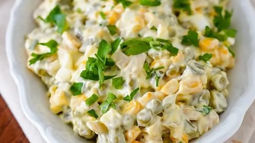 Парочкой рецептов решили поделиться и с вами. Вариантов аж восемь, так что точно найдется что-то и вам по вкусу. Сохраняйте и пробуйте! 1 банка консервированной кукурузы 1 банка консервированного горошка 500 гр. отварных кальмаров (нарезанных кубиками) 3 вареных яйца кубиками 3 средние отварные картофелины кубиками 1 средняя луковица кубиками 1 ч. л. столовой горчицы 200 мл майонеза с перепелиными яйцами или лимонный соль, перец по вкусу петрушка для подачи 300 гр. копченной куриной грудки кубиками 2 вареных яйца на терке 50 гр...