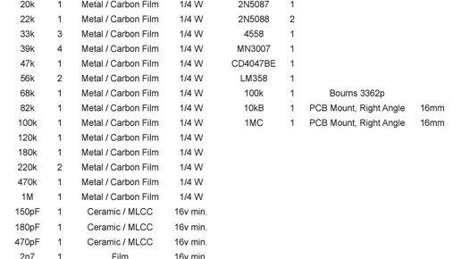 Предыдущая часть Мы уже рассматривали некоторые схемы популярных гитарных эффектов. Например Deep Blue Delay. И уже на этом примере можно отметить парочку самых популярных компонентов - это резистор на 10 килоом и конденсатор на 100 нанофарад. Видно, что остальные номиналы встречаются буквально 1-2 раза, а этих существенно больше. Немного портит картину конденсатор на 1 микрофарад (который тоже встречается 4 раза), но это специфика данной схемы. Аналогично устроен и мир хоруса Boss CE-2 Тут уже чуть меньше конденсаторов на 100 нанофарад, но зато резисторов на 10 килоом - ещё больше...