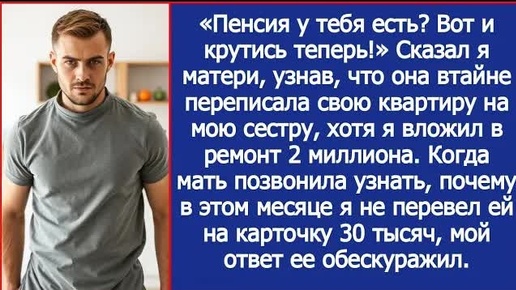 Пенсия у тебя есть? Вот и крутись теперь! Сказал я матери, когда она отдала свою квартиру сестре...