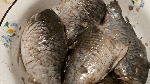 Здравствуйте всем.Сразу хочу задать вопрос, объясните мне пожалуйста,что это значит +100500.Потому что недружелюбные комментаторы мне присылают эту цифру.Что это обозначает по отношению ко мне-оскорбление,насмешка,презрение.Очень мне это интересно. Сбор продолжается,за три дня сумма на забор-26850,на фонари -22708 рублей собрано. Прочитала я на канале"ХитрЮлькины рецепты" рецепт с запеканием хвостиков рыбы.В морозильнике с лета лежат караси.Думаю,дай ка попробую карасей запечь.Смешала перец молотый черный,чеснок свежий давленый,масло и в этой смеси замариновала пять карасиков...