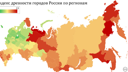 Города России, часть 1. Индекс древности городов по регионам. Региональная динамика и ещё кое-что