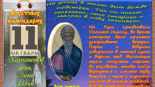 11 октября - Приметы, обычаи и ритуалы, традиции и поверья дня. Все праздники дня во всех календарях.