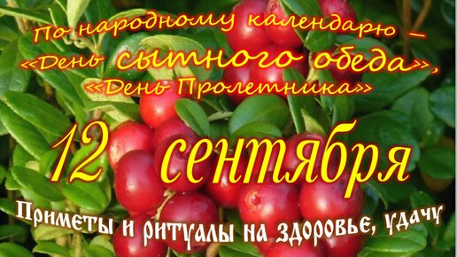 12 сентября - Приметы, обычаи и ритуалы, традиции и поверья дня. Все праздники дня во всех календарях.