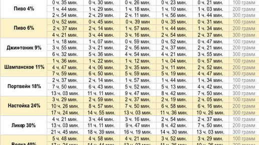 Сразу скажу, что подробная таблица с периодами полного выведения алкоголя из организма находится ниже в тексте, но сначала стоит прочесть короткое предисловие, чтобы у вас всё точно было хорошо. У людей, имеющих автомобиль, нередко возникает вопрос о том, сколько можно выпить спиртного вечером, чтобы потом утром сесть за руль, уверенным в том, что это не принесет никаких последствий. Очевидно, что лучшим решением будет вообще не пить ничего алкогольного перед скорым выездом. Однако если так получилось,...
