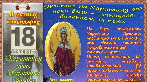 18 октября - Приметы, обычаи и ритуалы, традиции и поверья дня. Все праздники дня во всех календарях.
