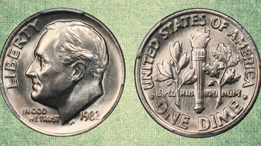 Эта монета появилась в результате сбоя в процессе изготовления штампа. Она вошла в оборот и являлась обычным платёжным средством, прежде чем коллекционеры обратили внимание на её особенность. Ныне эта монета считается самой значимой ошибкой чеканки в серии десятицентовых монет с изображением Рузвельта и одной из самых значительных ошибок Монетного двора США конца ХХ века. Итак, наш рассказ о редкой десятицентовой монете (о Roosevelt dime), чеканившейся в 1982 году Монетным двором в Филадельфии. В...