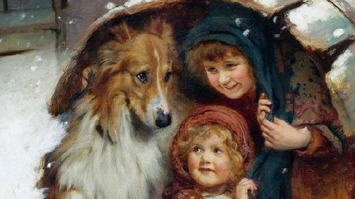 Уютный мир содружества животных и людей на картине Артура Джон Элсли "Непогода", 1989 г