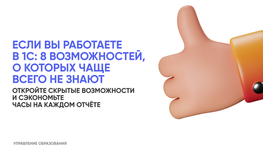 Когда мы говорим "1С", у многих в голове всплывает что-то вроде: «это сложно», «это для бухгалтеров», «ничегоне понятно». А на самом деле — 1С давно уже не только про проводки и отчёты. Это целая экосистема, которая помогает бизнесу работать быстрее, проще и без суеты. Мы собрали 8 функций, которые делают работу в 1С гораздо удобнее. Возможно, о чём-то из этого вы даже не догадывались. А в конце расскажем, как всё это можно освоить под ваши задачи и даже с выездом преподавателя прямо на ваше предприятие...