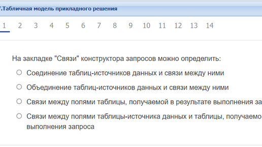 Тест сдан (100%) 1. На закладке "Связи" конструктора запросов можно определить: Соединение таблиц-источников данных и связи между ними 2. При обходе результата запроса с использованием "ОбходРезультатаЗапроса.ПоГруппировкам" В одном цикле обходятся только записи, принадлежащие определенной итоговой группировке 3. В тексте запроса можно указывать (напрямую, без использования параметров) значения системных перечислений: из определенного перечня 4. При установке флага "Для изменения" (в режиме автоматических...