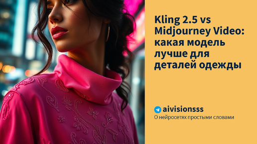 Создайте сравнение Kling 2.5 и Midjourney Video по детализации одежды в AI-видео, подчеркните преимущества каждой системы в проработке текстур, аксессуаров, складок; учтите разрешение, стабильность и управление стилем; добавьте реальные примеры и советы для максимальной детализации одежды в результатах. В мире технологий каждую секунду происходят удивительные изменения. Актуальность информации и возможностей, которые предлагает искусственный интеллект, не оставляет равнодушными ни дизайнеров, ни маркетологов, ни просто творческих людей...