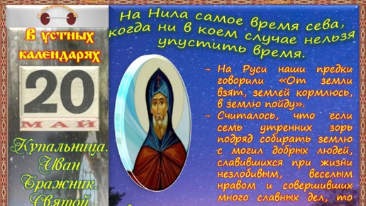 20 мая - Традиции, обычаи и поверья, связанные с этим днём. Все праздники, которые отмечаются в этот день в разных календарях.