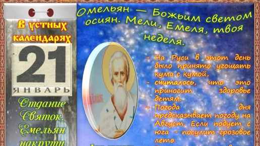 21 января - Традиции, обычаи и поверья, связанные с этим днём. Все праздники, которые отмечаются в этот день в разных календарях.