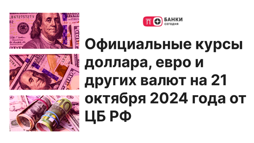 Официальные курсы доллара, евро и других валют на 21 октября 2024 года от ЦБ РФ