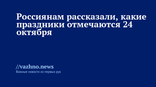 В пятницу, 24 октября, приходится сразу несколько знаменательных событий. В этот день отмечают День Организации Объединенных Наций, День памяти погибших испытателей ракетно-космической техники и праздник подразделений специального назначения Вооруженных Сил России, известный как День спецназа. В православии вспоминают апостола от семидесяти Филиппа. Согласно народному календарю, сегодня отмечается Филиппова канитель. Подробнее о данных и других событиях читайте в материале «Известий». Праздники 24...